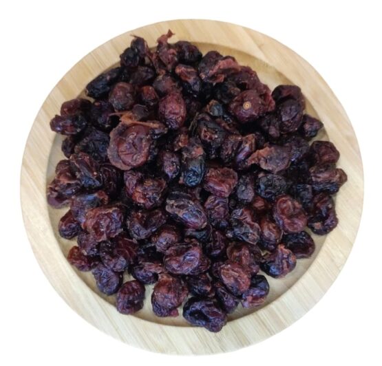 El arándano rojo sin azúcar es una fruta deshidratada con aspecto arrugado y color rojo.